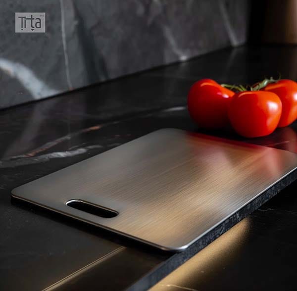 נכון ל-2024, Tita™ היא מהחברות היחידות המציעות לוחות (קרש) חיתוך מסגסוגת המכילה טיטניום SUS316Ti - חומר באיכות גבוהה המשמש גם בתעשיות רגישות כמו ציוד רפואי, ומתאים לשימוש יומיומי עמיד ובטוח לאורך זמן.